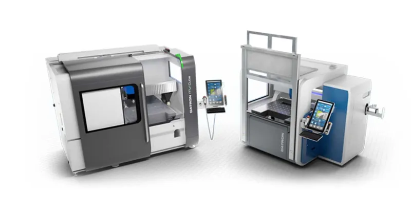 DATRON’s automation portfolio includes solutions like automatic front and side doors, robotic integrations, tool management systems, automated dust extraction and lubrication systems, probe, camera and sensors, and hardware/software interface apps that connect through DATRON’s next control software.