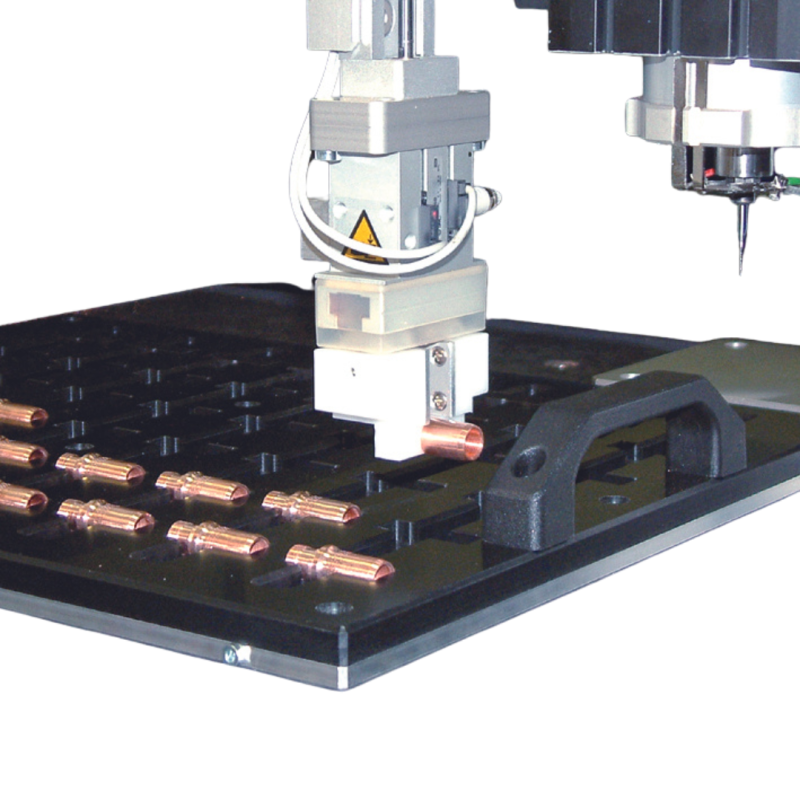 The DATRON Pick-and-Place is a pneumatic automation system that is easy to maintain and operate. Just one program is required to perform both the automation and machining process. The accessory is mounted on the Z-axis and uses grippers to pick up and put down parts. This system is well-suited for small part applications that need integrated automation and unattended production runs.